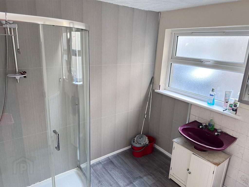Shower Room: 2.4m x 2.5m - Coloured suite. Lino flooring. Corner shower. W.C. Vanity unit with wash hand basin. Partly tiled walls. Radiator. Hot-press.